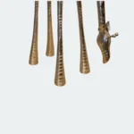 This exquisite antique giraffe showpiece, crafted from high-quality metal, serves as a striking decorative element for any space. Its intricate design and elegant silhouette create a captivating focal point against a pristine white wall, blending artistry with sophistication. Ideal for collectors and enthusiasts alike, this sculpture embodies a timeless charm that enhances both modern and traditional interiors.
