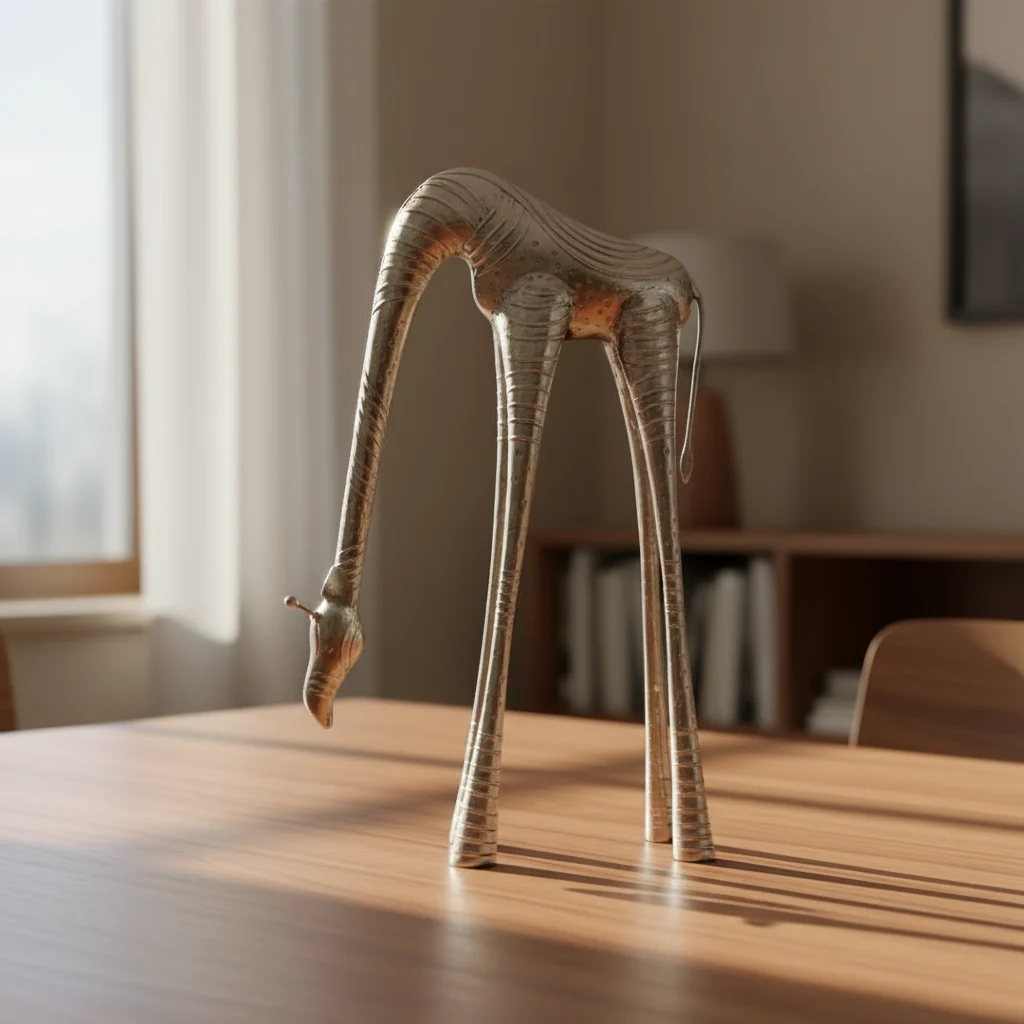 This exquisite antique giraffe showpiece, crafted from high-quality metal, serves as a striking decorative element for any space. Its intricate design and elegant silhouette create a captivating focal point against a pristine white wall