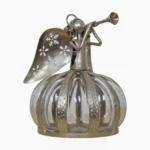 This exquisite glass angel, elegantly poised with a trumpet, serves as a stunning decorative piece for any shelf. Crafted with meticulous attention to detail, the angel’s translucent form captures and refracts light.