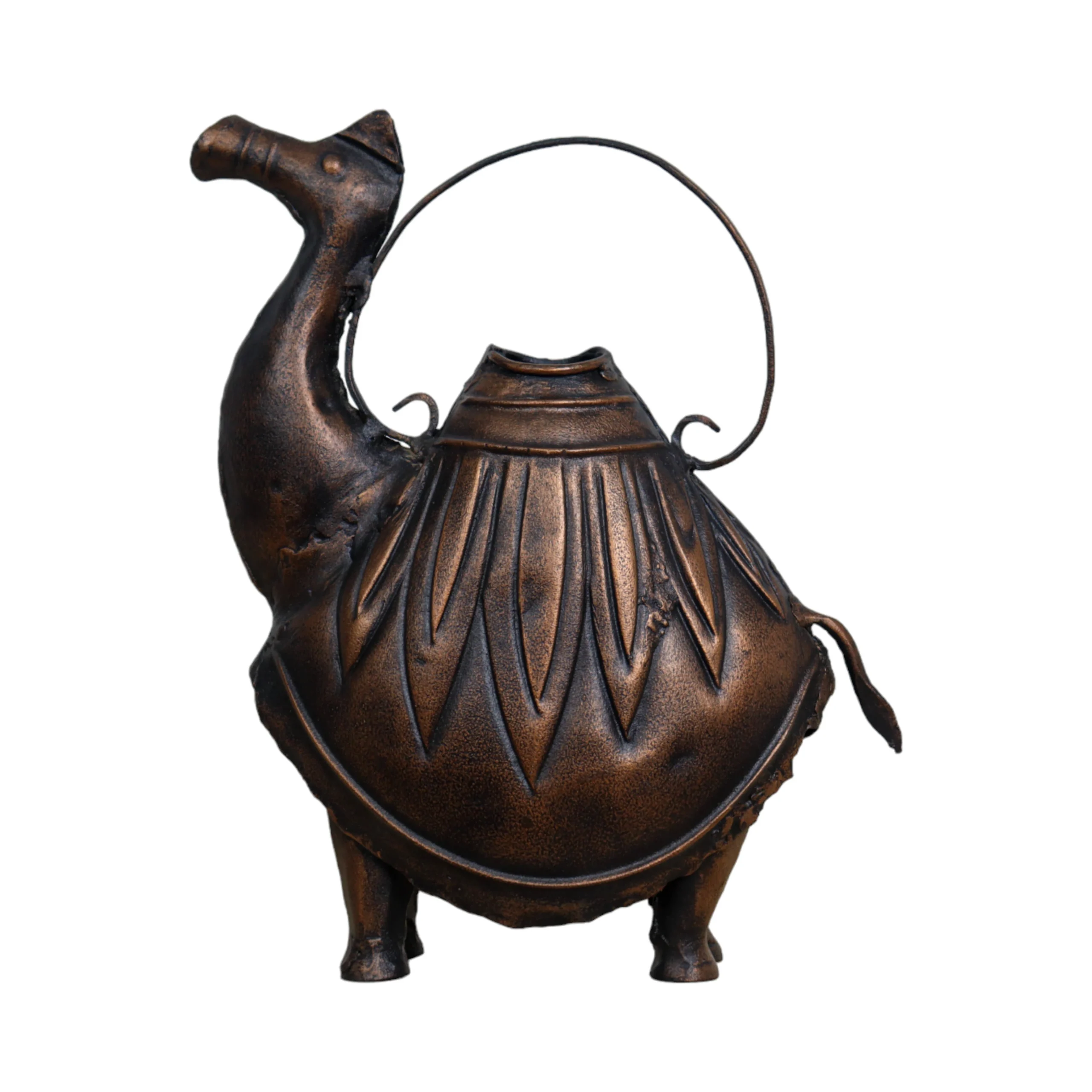 This exquisite Golden camel statue, elegantly positioned on a stone table, serves as a striking centerpiece for any decor. Its intricate detailing and rich patina capture the essence of the majestic creature, making it a perfect addition to both indoor and outdoor settings. Complementing this stunning piece are the Golden Camel Watering Cans, designed to enhance your gardening experience while adding a touch of sophistication to your outdoor space. Together, they create a harmonious blend of artistry and functionality, ideal for discerning collectors and garden enthusiasts alike.
