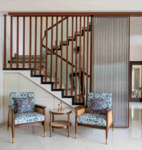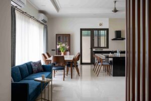 This Jaipur residence, a vision of architect Sheetal Tater of Navya Designs Pvt. Ltd., demonstrates the power of simple design and calming colors to create a truly tranquil atmosphere. Jaipur Woods is proud to have its luxury furniture and decor featured in this exceptional project, enhancing the home’s refined and inviting character.
