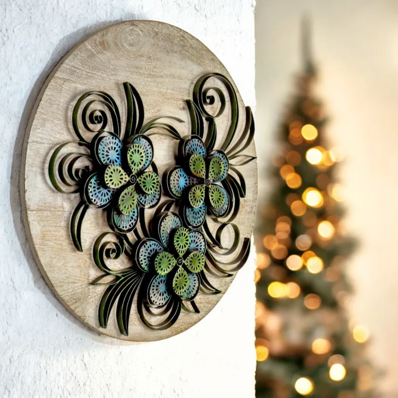 your living space with our exquisite decorative wall hanging, featuring a stunning arrangement of green and blue flowers that effortlessly blend nature’s beauty with artistic flair. Crafted with meticulous attention to detail