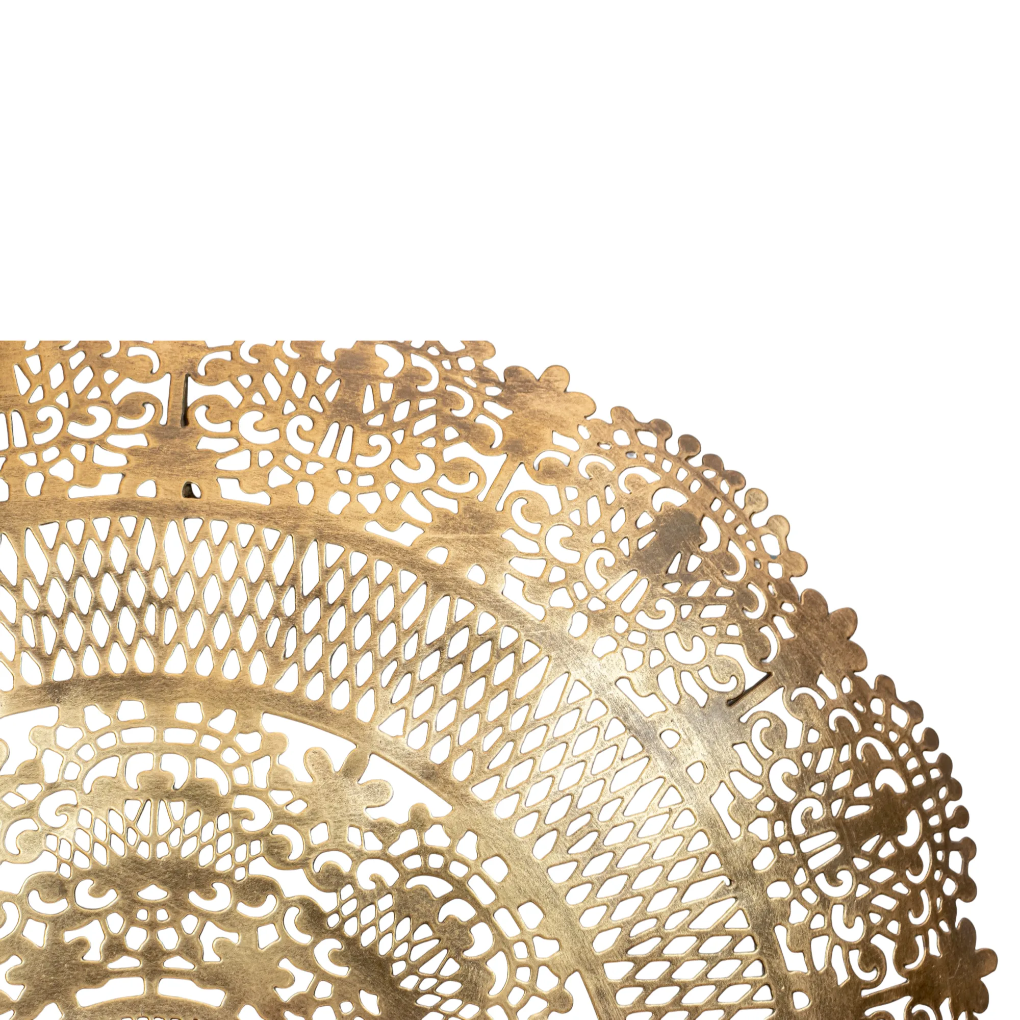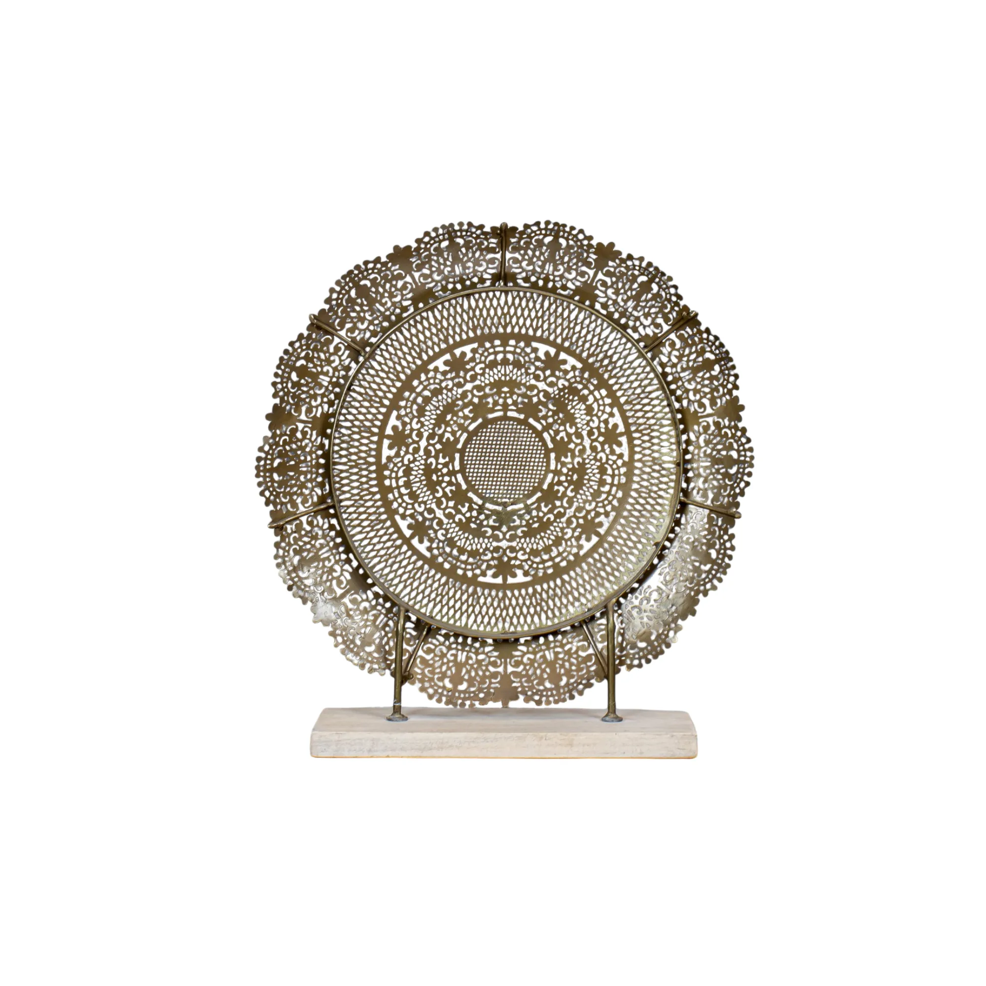 Embrace the beauty of intricate artistry with the “Gilded Radiance,” a captivating tabletop art piece that exudes luxury and sophistication. This stunning circular design features an intricate filigree pattern, meticulously crafted from metal and finished in a rich, golden hue. The intricate filigree pattern is meticulously crafted from metal, showcasing the meticulous attention to detail and the artistry involved in the creation process. The result is a mesmerizing interplay of light and shadow that adds a touch of opulence to your decor.