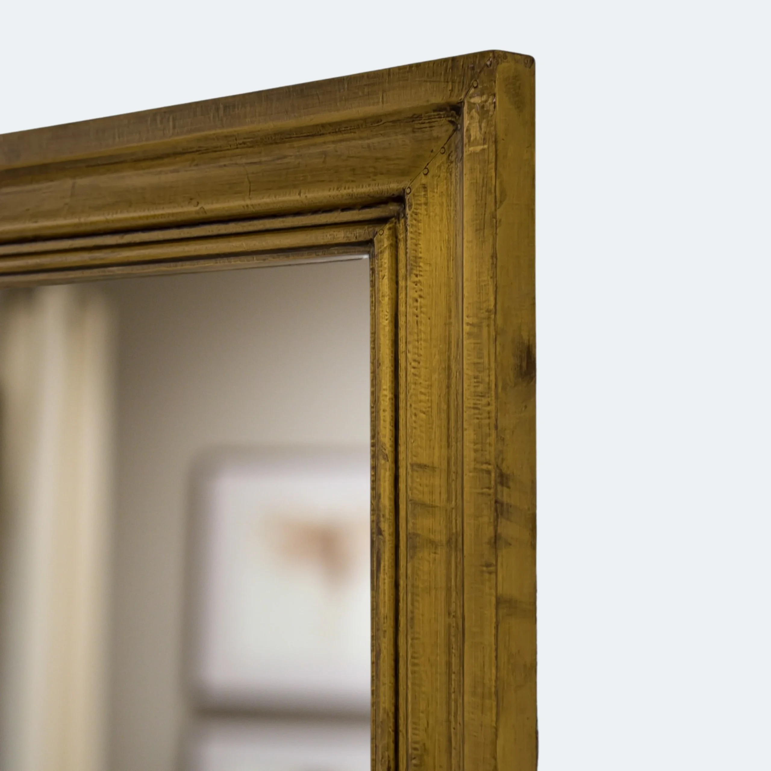This elegant rectangular wall mirror features a classic design with a warm gold-tone finish, creating a versatile look that complements various decor styles.