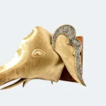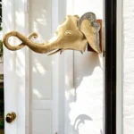 This exquisite gold elephant head wall decor combines elegance and artistry, featuring a stunning metallic finish that captures attention. The intricate design is complemented by a sturdy wooden handle