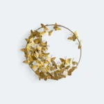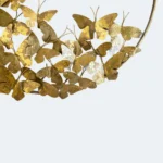 Our enchanting wall art captures the ethereal beauty of a swarm of butterflies in flight. Crafted from metal with intricate details, the piece features a cluster of delicate butterflies arranged in a circular formation, creating a sense of movement and wonder. The warm gold finish adds a touch of elegance and sophistication, making it a perfect addition to any space with contemporary or nature-inspired decor. This unique and eye-catching wall hanging is sure to inspire awe and add a touch of magic to your home.