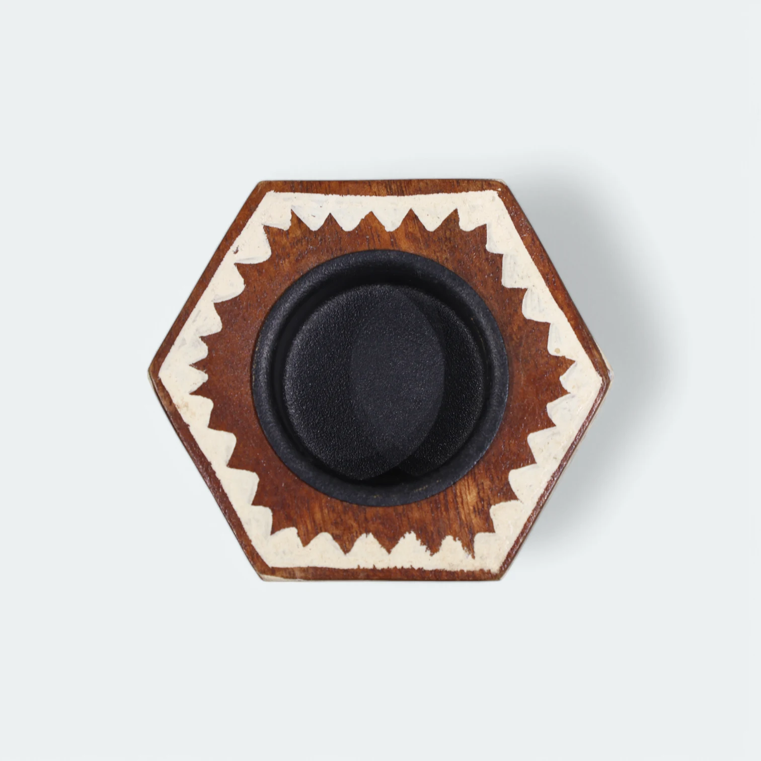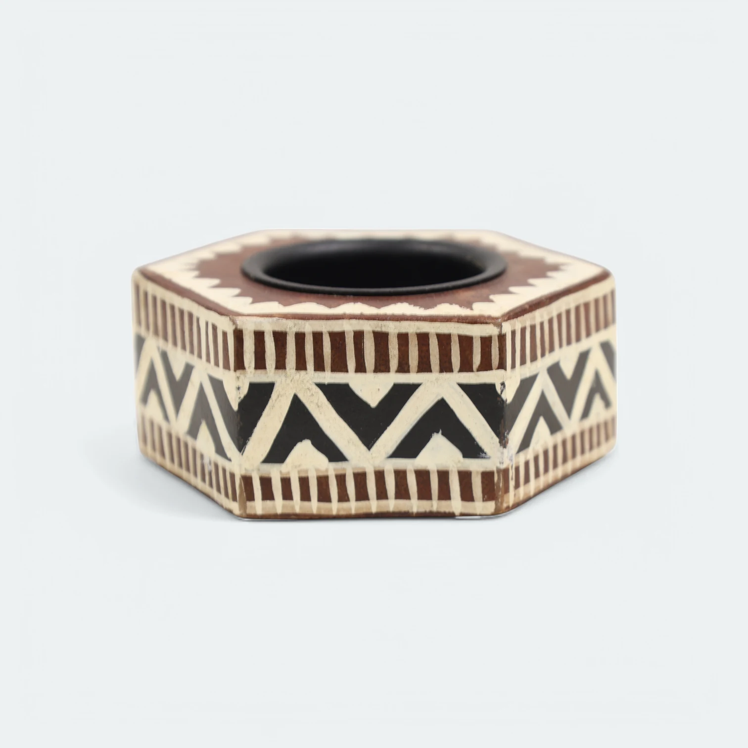 Introducing our exquisite Hand-Carved Block Tea-Light Holder, a stunning wooden box that seamlessly blends functionality with artistic elegance. Crafted from high-quality wood, this tea-light holder features a striking black and white design that add