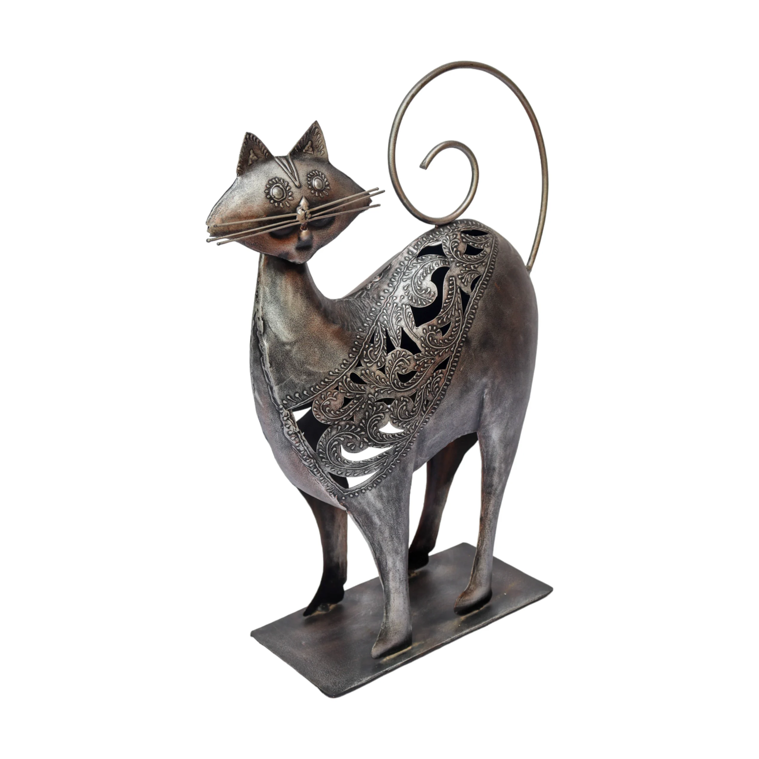 This exquisite metal cat statue features a unique spiral design, making it an ideal decorative piece for any home or garden. Crafted from durable metal, it combines artistic flair with resilience
