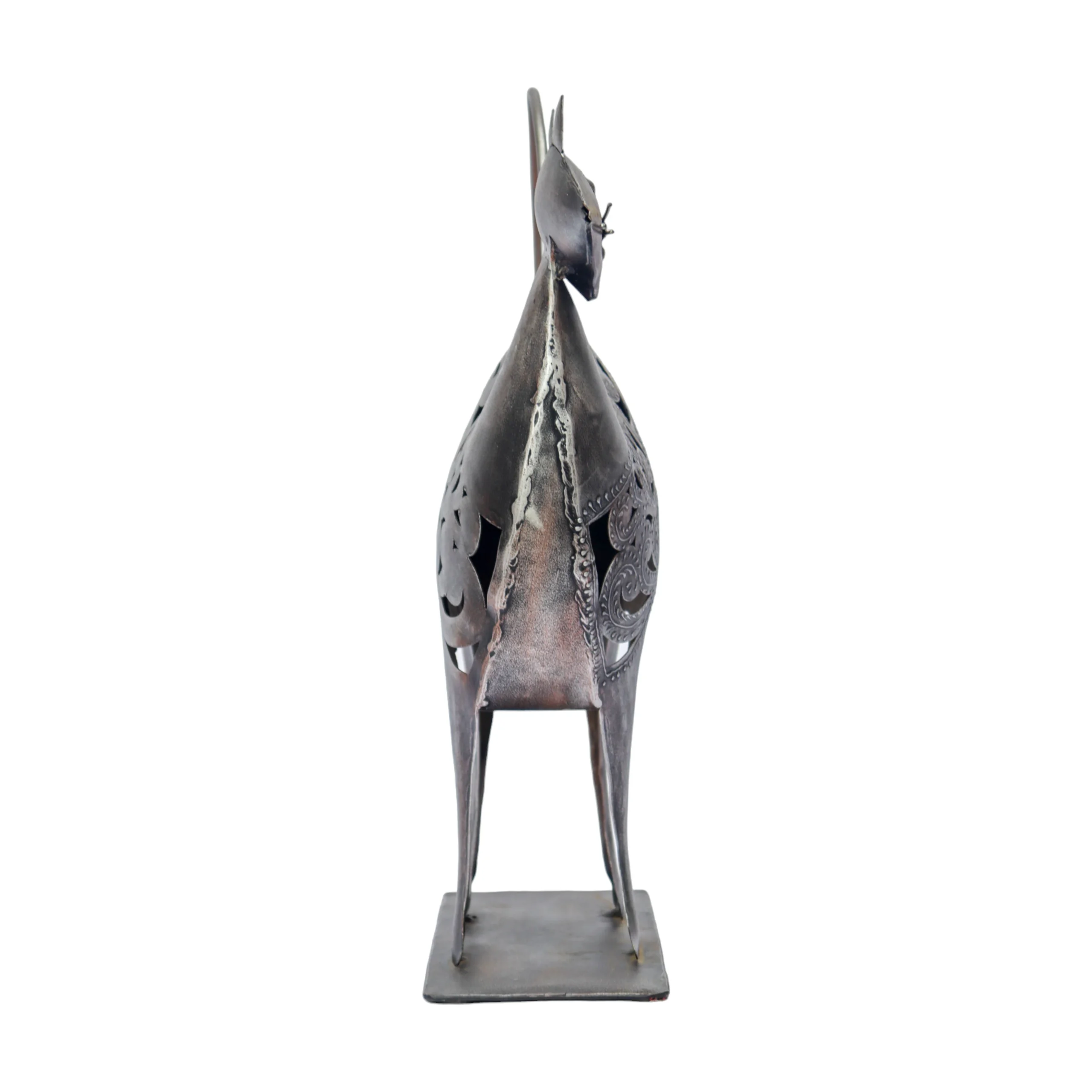 This exquisite metal cat statue features a unique spiral design, making it an ideal decorative piece for any home or garden. Crafted from durable metal, it combines artistic flair with resilience, ensuring it remains a striking focal point in your decor. Perfect for cat lovers and art enthusiasts alike, this statue adds a touch of elegance and whimsy to any space.