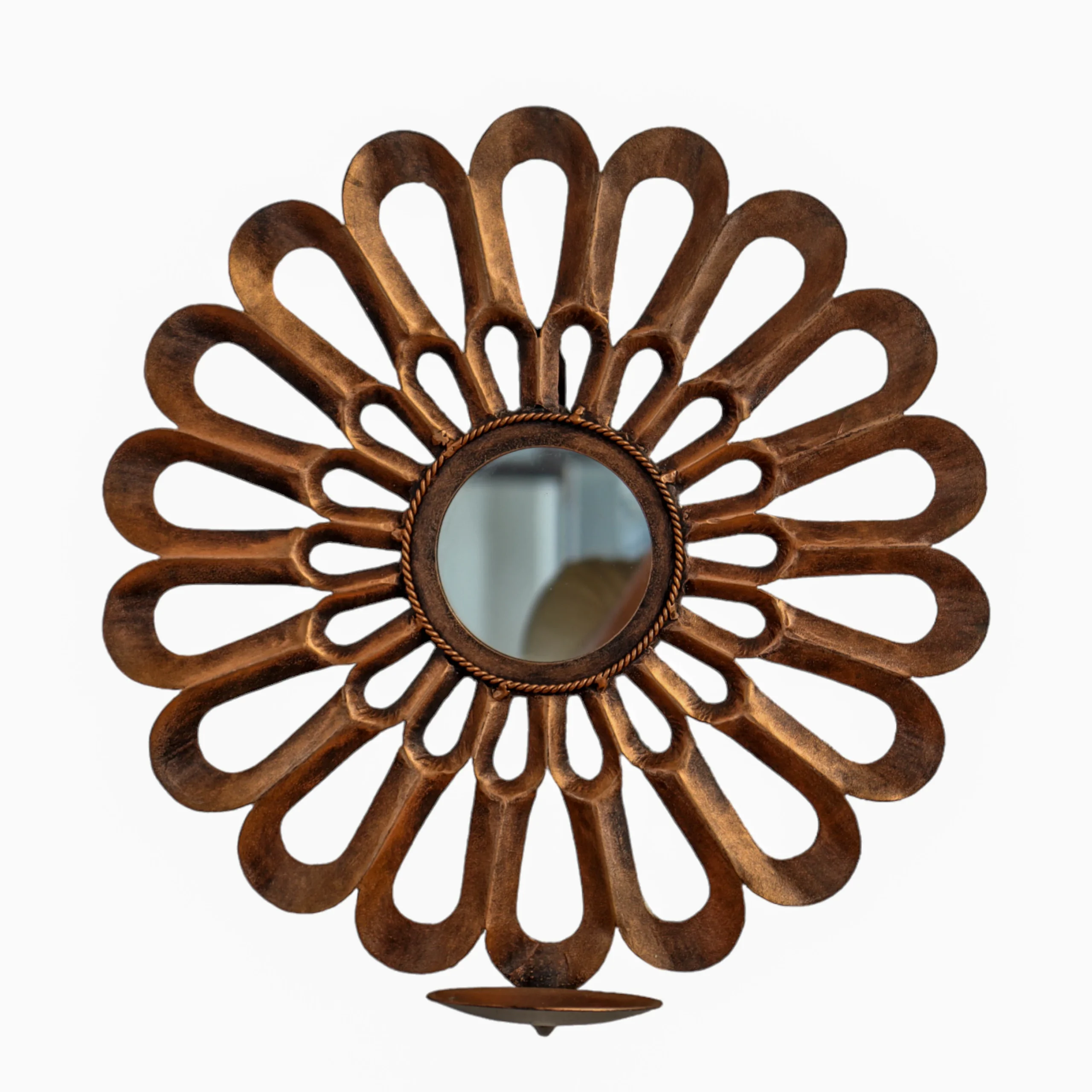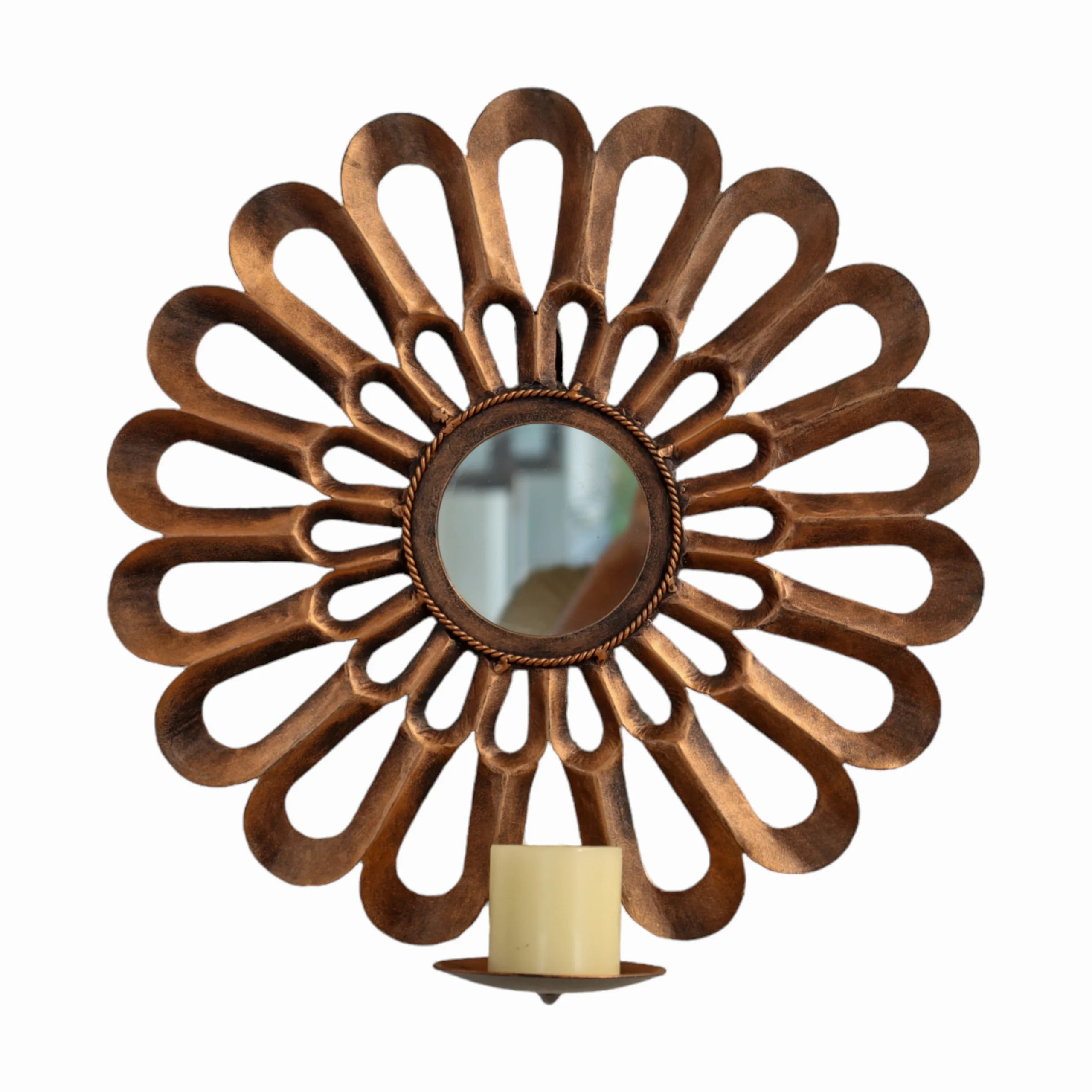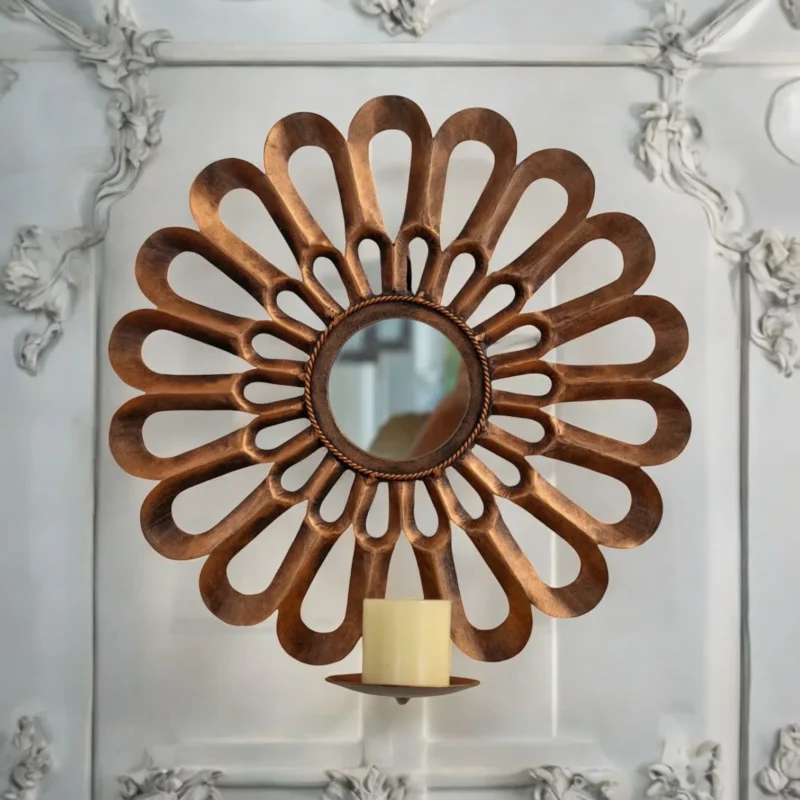 Elevate your home decor with this exquisite Metal Wall Hanging Sconce, featuring a beautifully crafted decorative mirror that serves as both a functional and aesthetic piece. The mirror’s elegant design reflects light and enhances the ambiance of any room, while the thoughtfully placed candle holder adds a warm, inviting glow to your space. Perfect for creating a cozy atmosphere in living rooms, bedrooms, or entryways, this sconce combines modern artistry with timeless charm. The durable metal construction ensures longevity, making it a lasting addition to your home. Whether used alone or as part of a gallery wall, this decorative mirror with a candle holder is sure to become a focal point in your interior design.