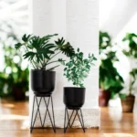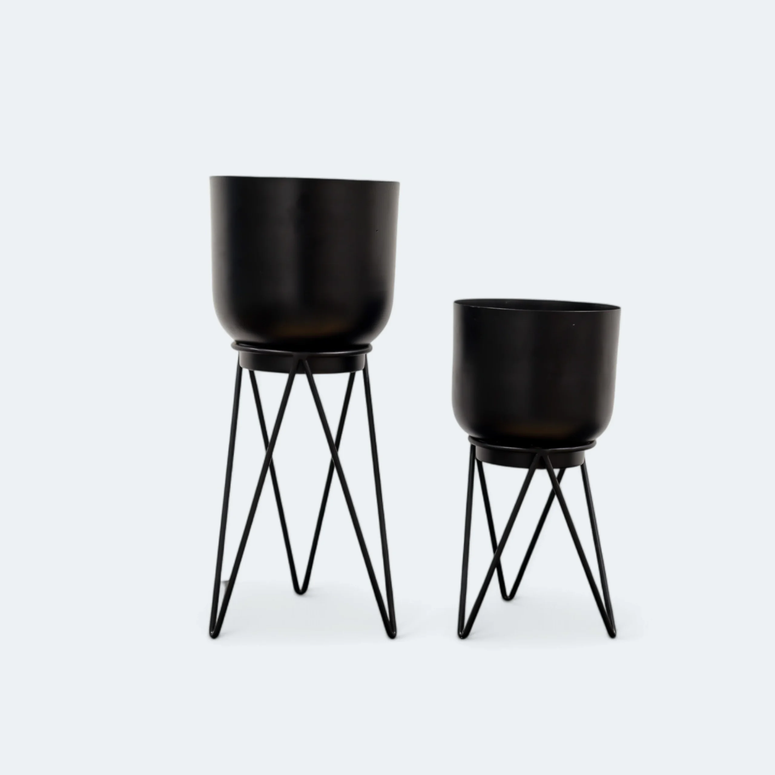 The Black Gardenia Planter with Stand is a stylish and modern addition to any indoor or outdoor space. Crafted from durable black metal, this planter features a sleek design that elevates your plants while providing a sturdy base