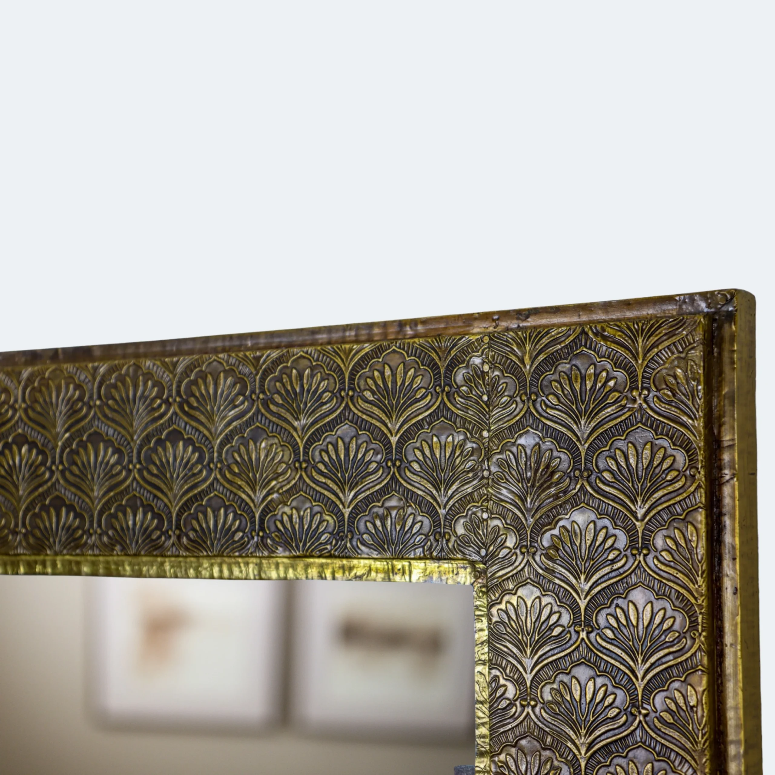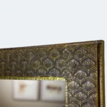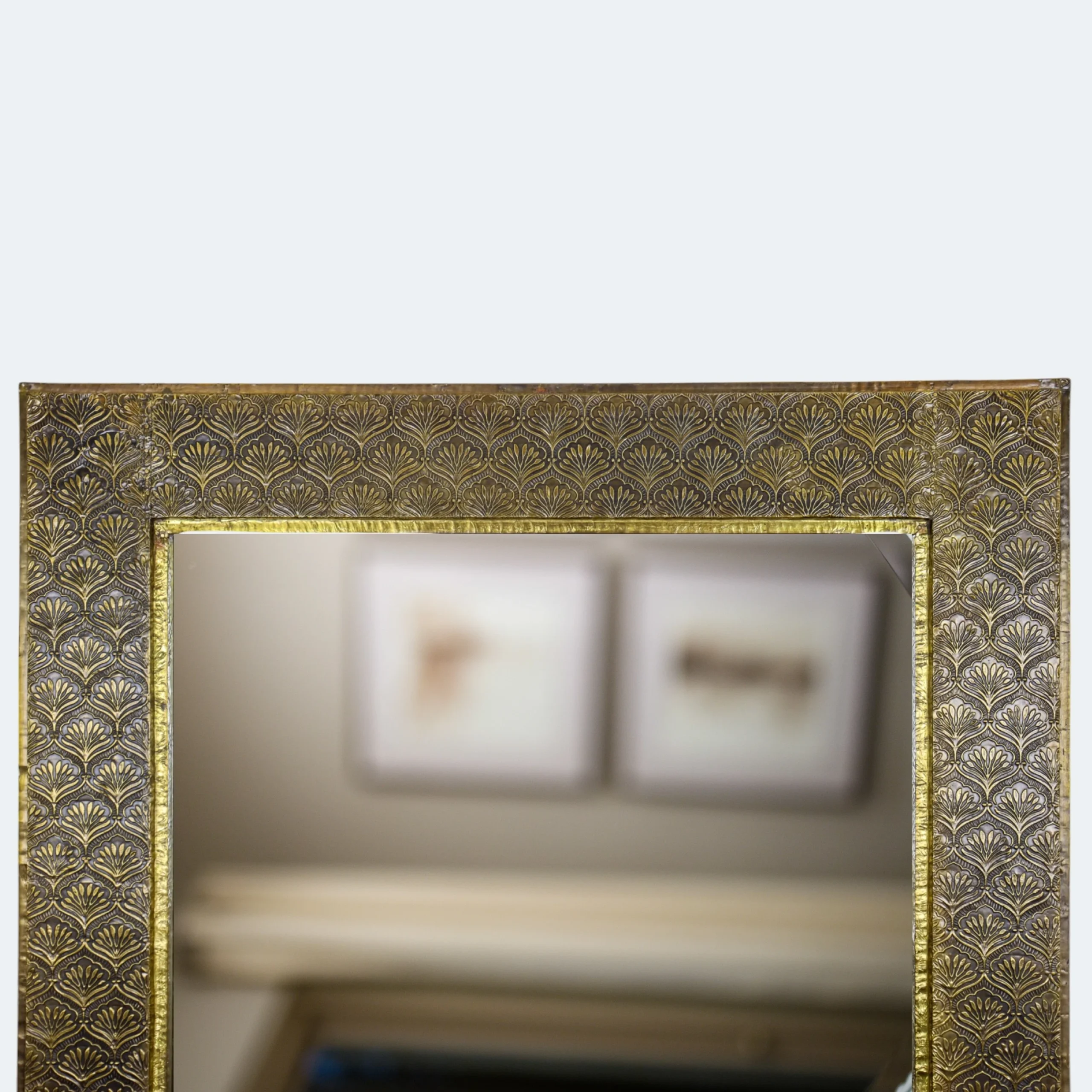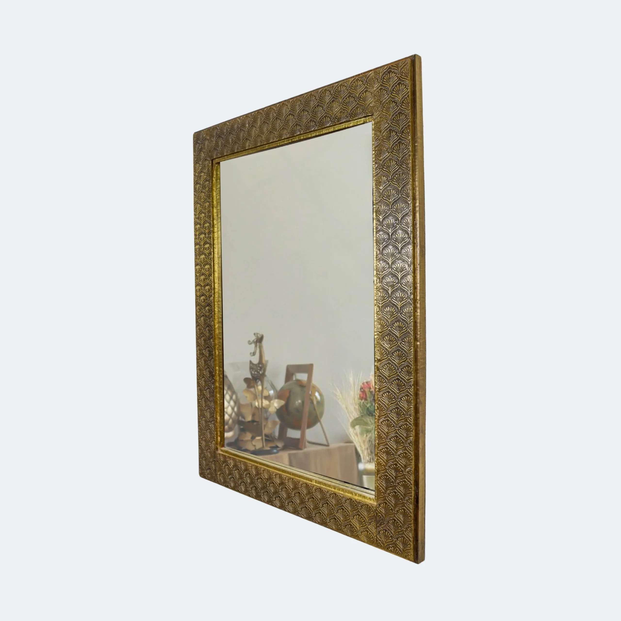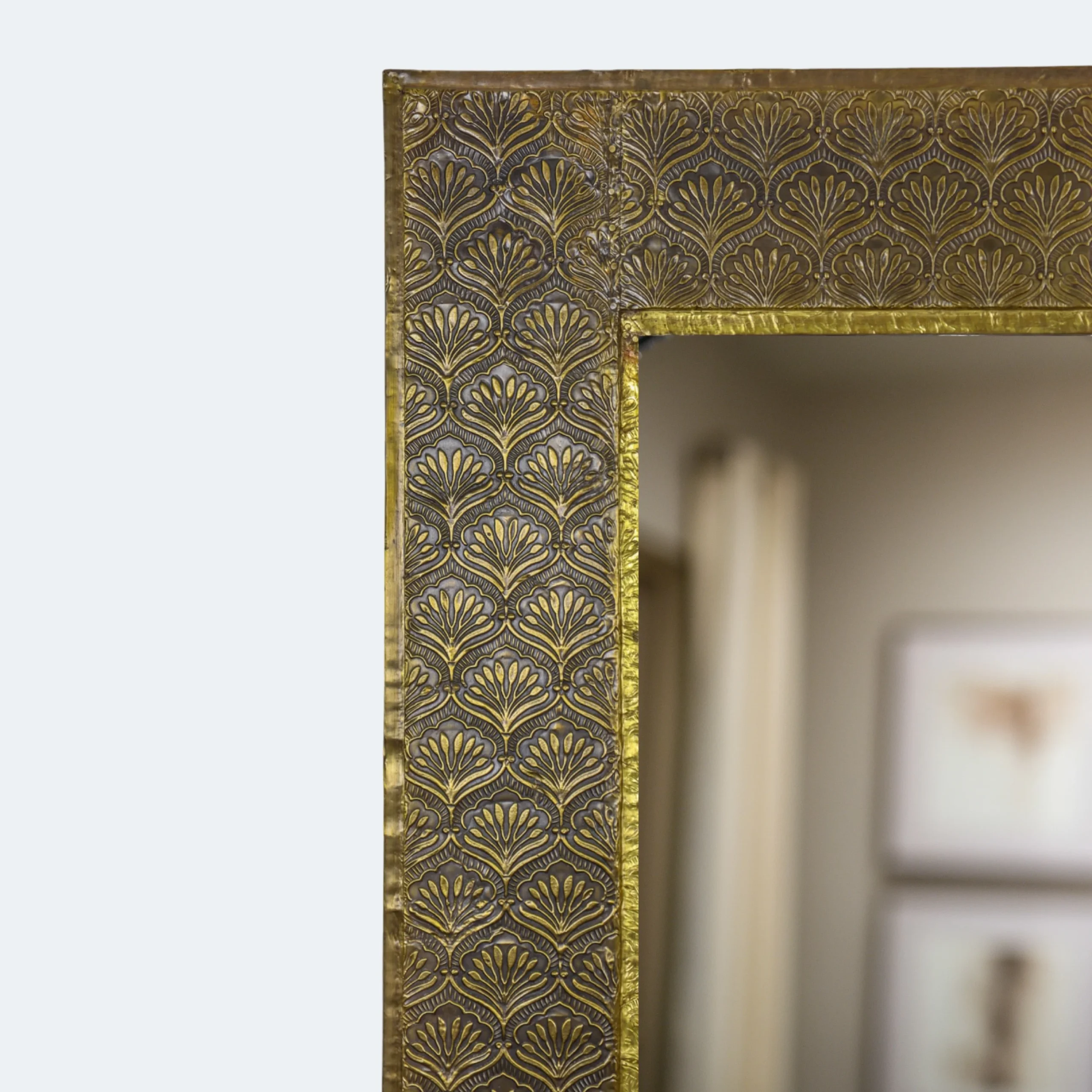 This stunning rectangular wall mirror is a statement piece that will add a touch of elegance and sophistication to any space. The frame features an intricate embossed design with a beautiful antique gold finish.