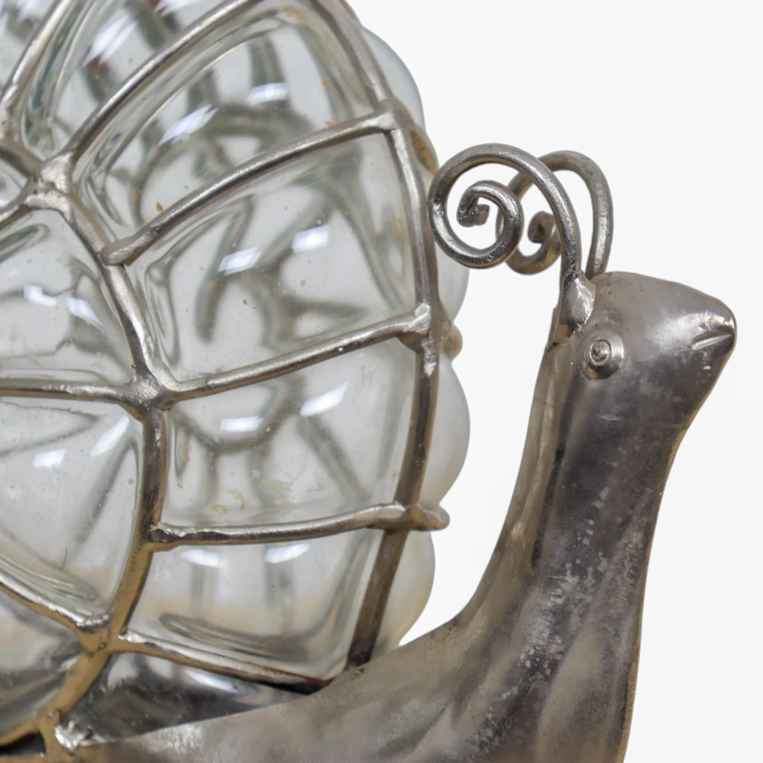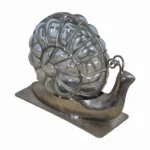 This exquisite antique vintage glass snail is a captivating decorative piece that showcases intricate craftsmanship and timeless elegance. Its delicate glass construction features a beautifully swirled shell, reflecting light in a mesmerizing manner, making it a perfect addition to any collection or home decor. Ideal for display on shelves, mantels, or as a unique gift, this charming snail embodies both artistry and nostalgia, appealing to lovers of vintage treasures.