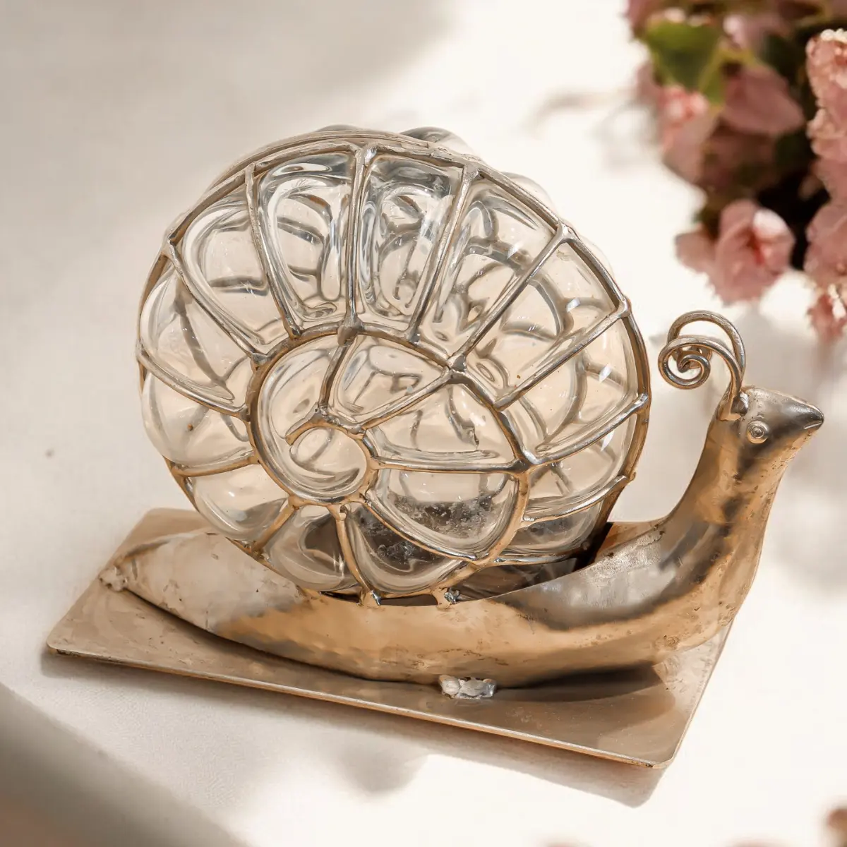This exquisite antique vintage glass snail is a captivating decorative piece that showcases intricate craftsmanship and timeless elegance. Its delicate glass construction features a beautifully swirled shell