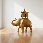 This exquisite golden elephant statue, adorned with a beautifully crafted roof, serves as a stunning decorative piece for any space. The intricate detailing and lustrous finish of the figurine highlight the elegance and cultural significance