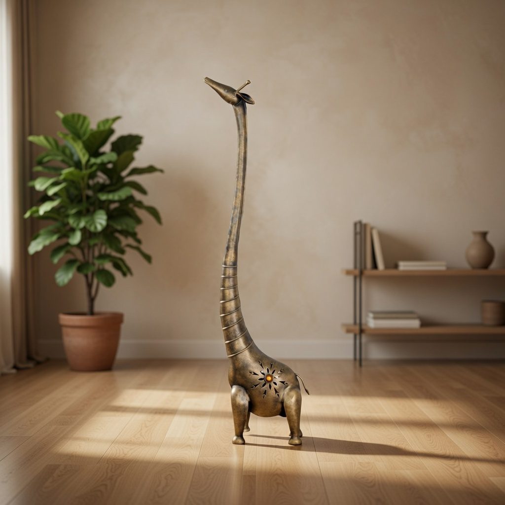 Metal Giraffe Decorative Showpiece, a stunning blend of artistry and elegance that captures the essence of wildlife in a sophisticated manner.