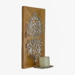 Introducing our exquisite Wooden Wall Hanging Sconce, a perfect blend of rustic charm and functional elegance. This beautifully crafted piece features a sturdy wooden frame that serves as a stylish backdrop for both a candle and a vase, allowing you to create a warm and inviting atmosphere in any room. The natural wood grain adds a touch of organic beauty, while the carefully designed sconce provides a secure and aesthetically pleasing way to display your favorite candle and floral arrangements. Ideal for enhancing your living space, this wall hanging not only serves as a decorative accent but also brings a soft, ambient glow to your home, making it an essential addition to your interior decor. Whether placed in a cozy corner, above a mantel, or as part of a gallery wall, this Wooden Wall Hanging Sconce is sure to elevate your home’s aesthetic and create a welcoming environment for family and guests alike.
